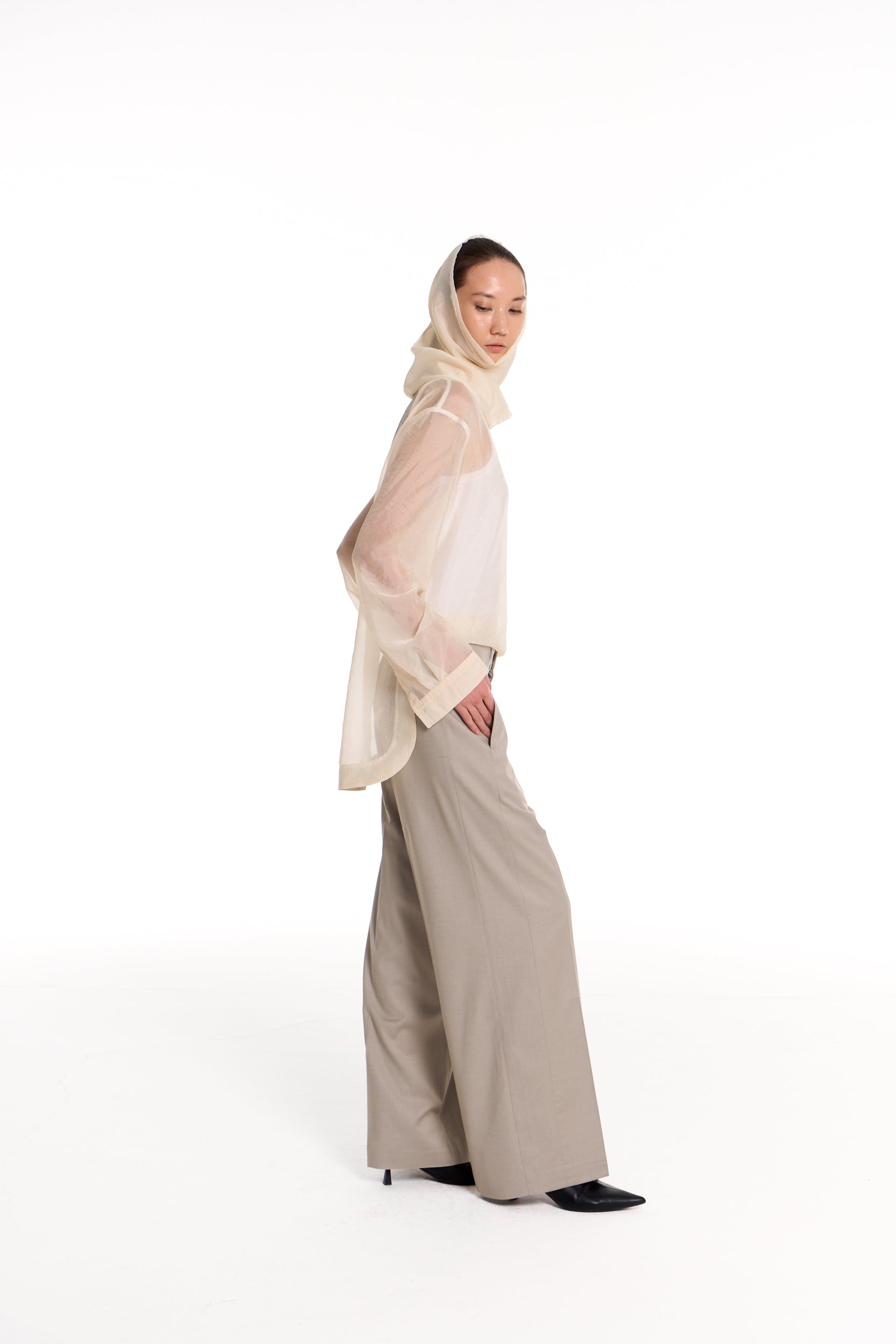 A feather-light sheer blouse designed for effortless layering. Air Line Blouse features a fluid silhouette, soft structure, and translucent finish that moves with you. Minimal yet expressive, it elevates any look with quiet sophistication.