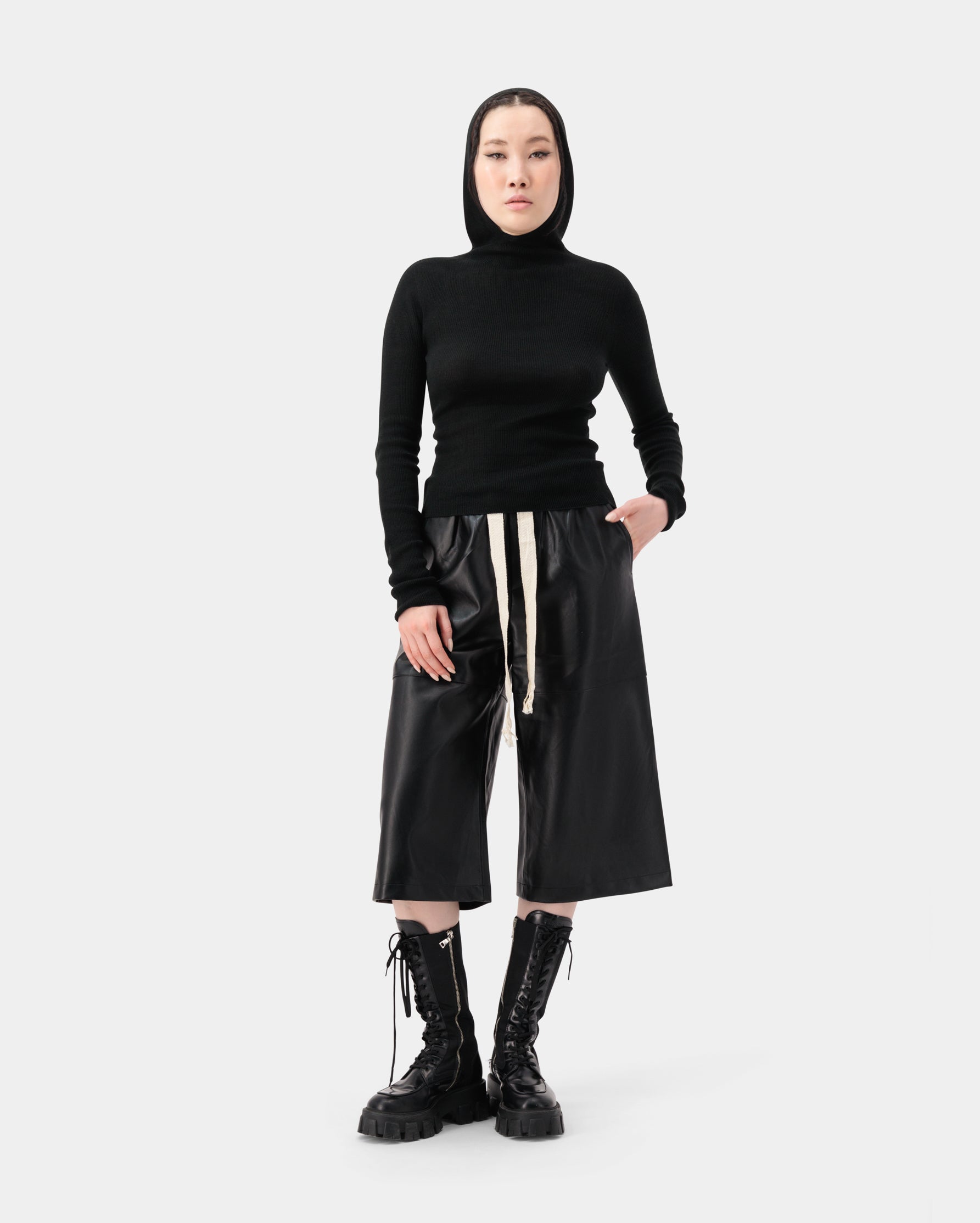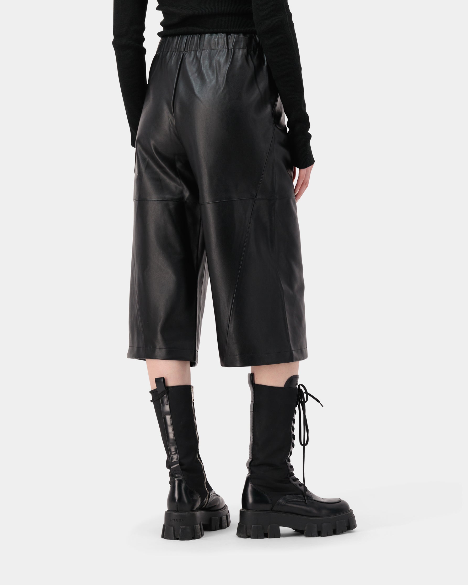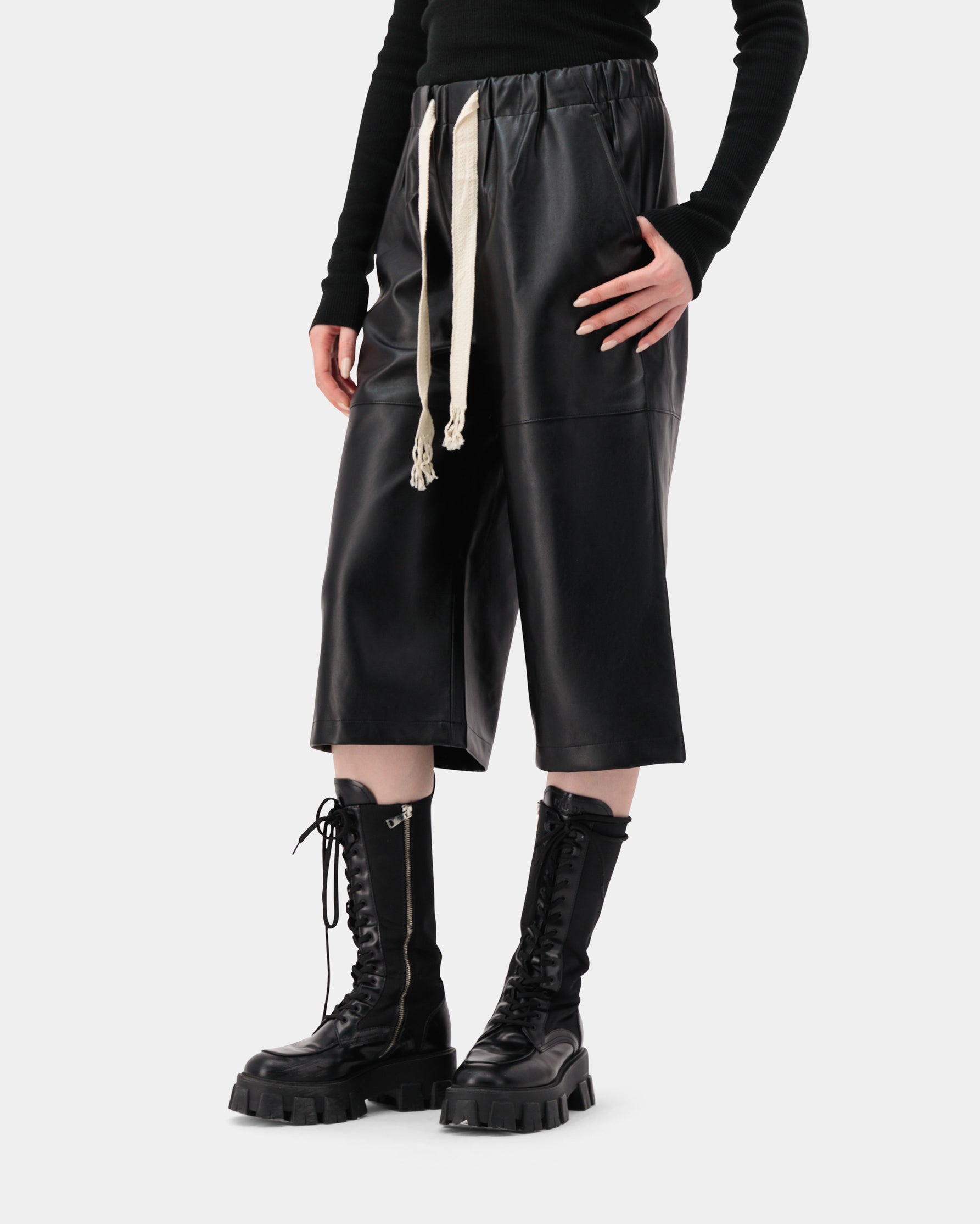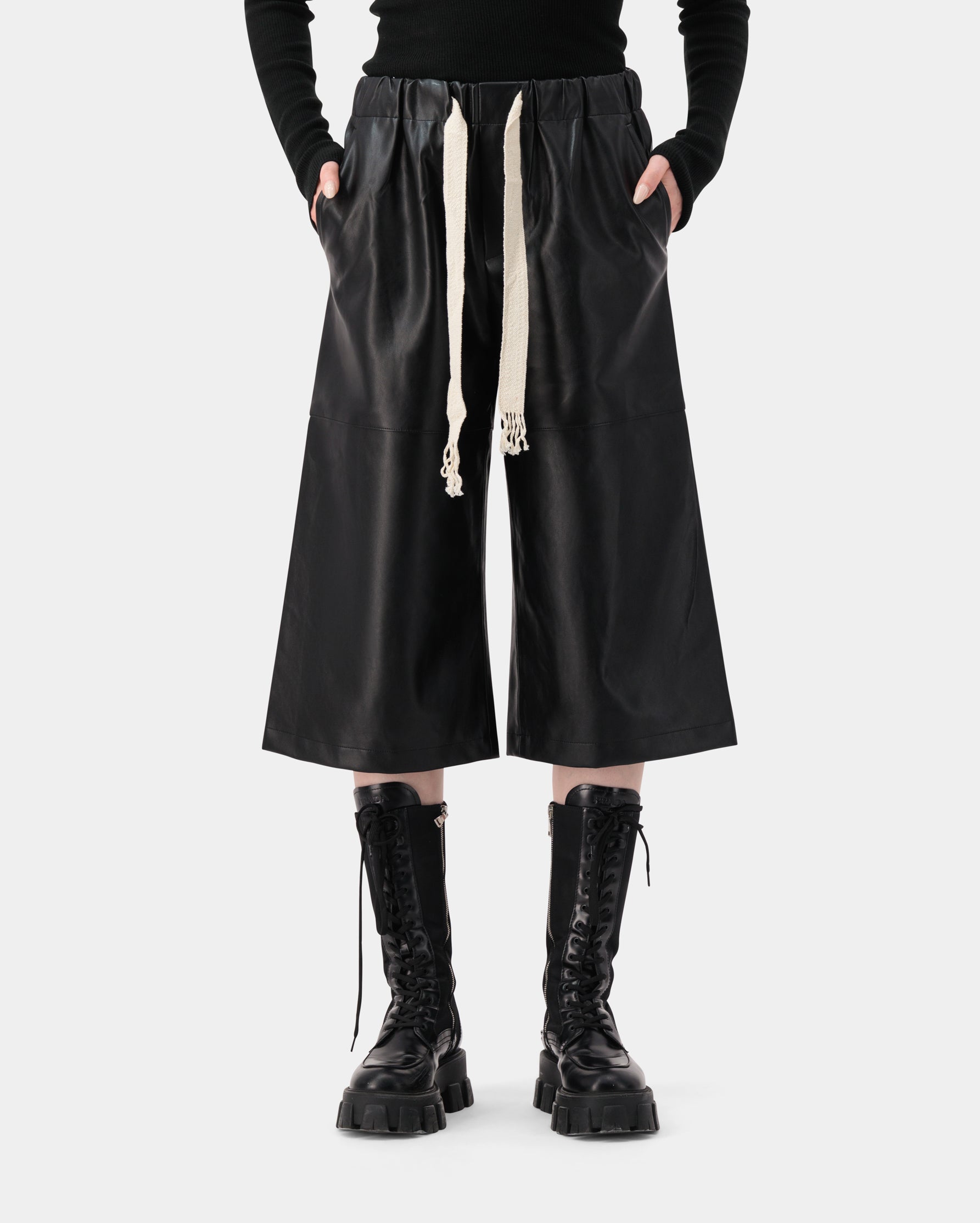 Drawstring wide leather culottes, made from 100% PU for a sleek and edgy silhouette.