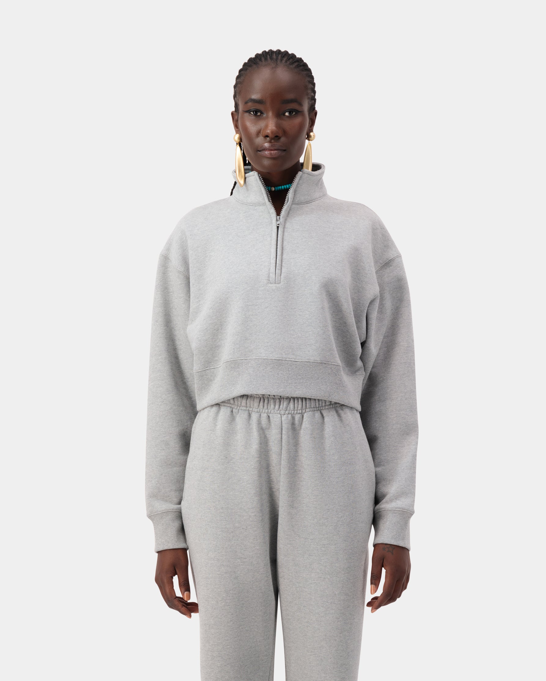 Half-zip cropped sweatshirt, crafted from a cotton-poly blend for a sporty yet stylish look.