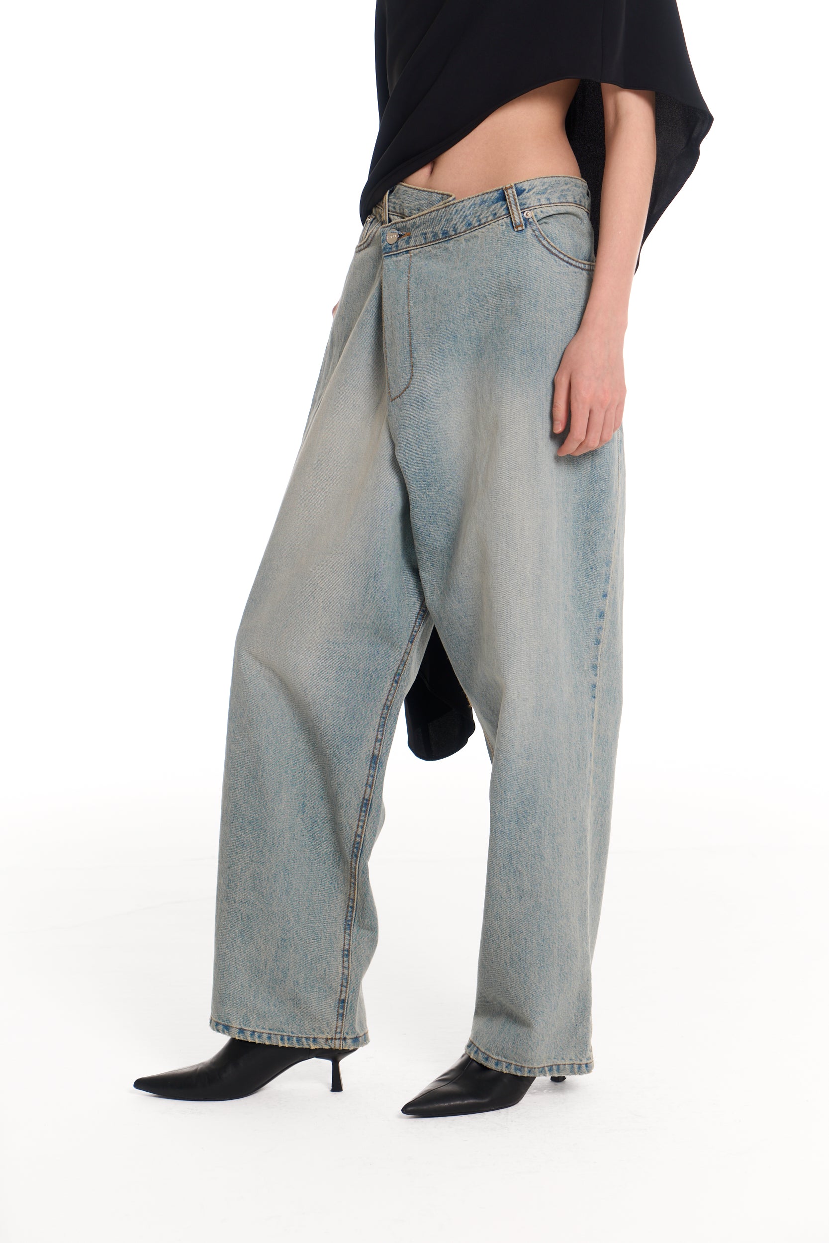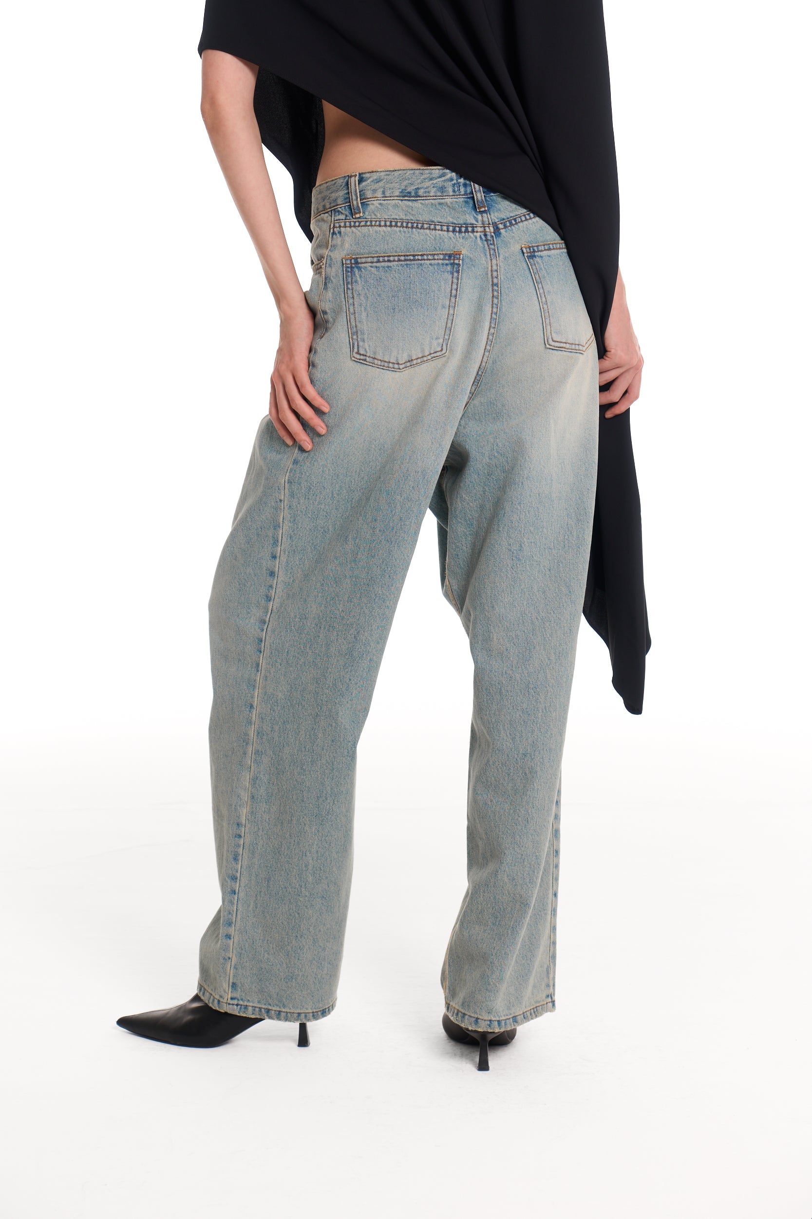 Relaxed denim designed with an intentionally slouched silhouette. The Ease Fit Denim sits low on the waist and falls into an easy wide leg, creating a confident, effortless look with everyday wearability.
