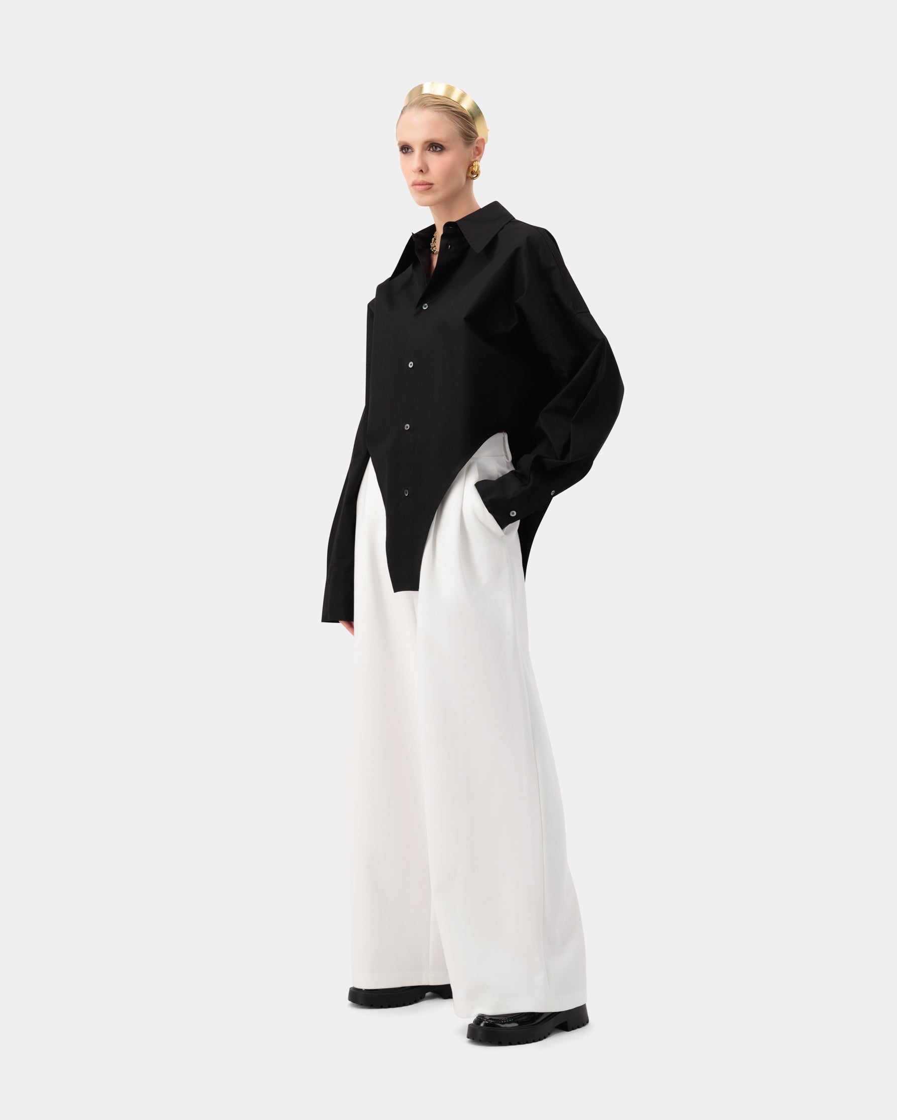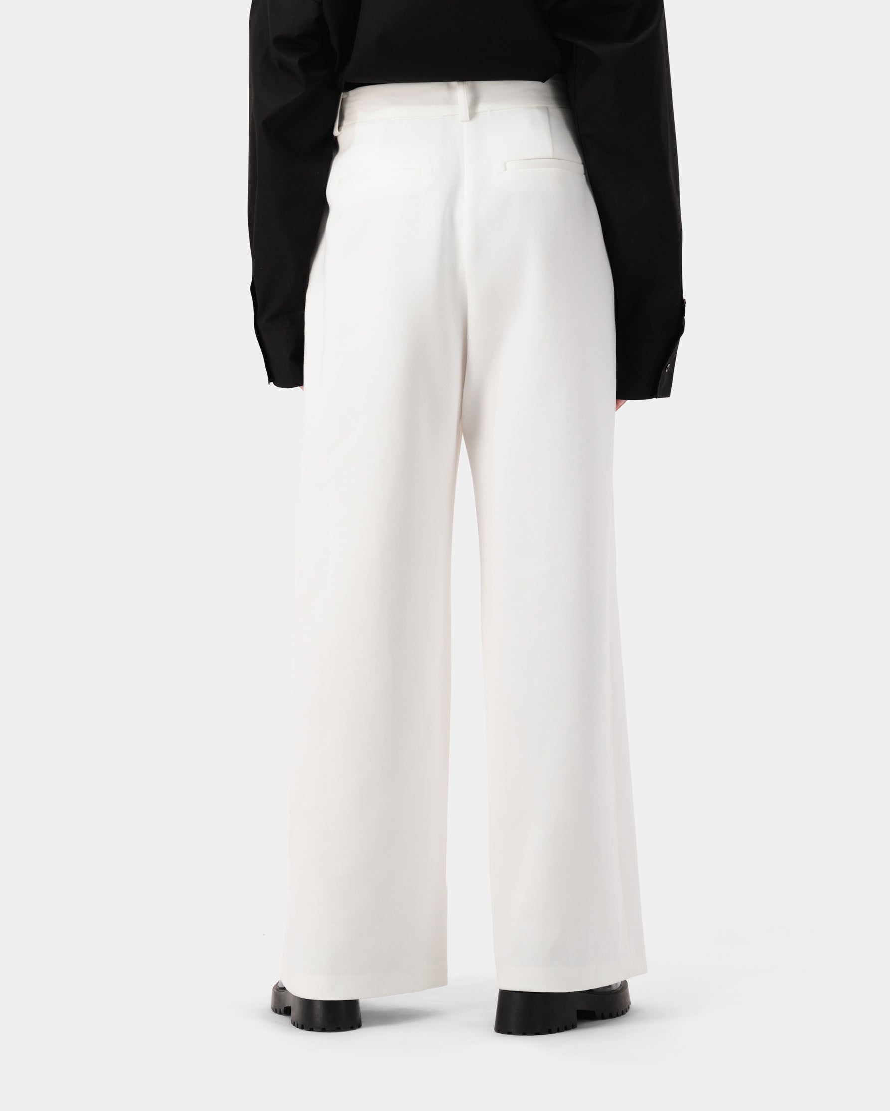 Sweat wide pin-tuck trousers, crafted from a cotton-poly blend for a comfortable yet structured fit.