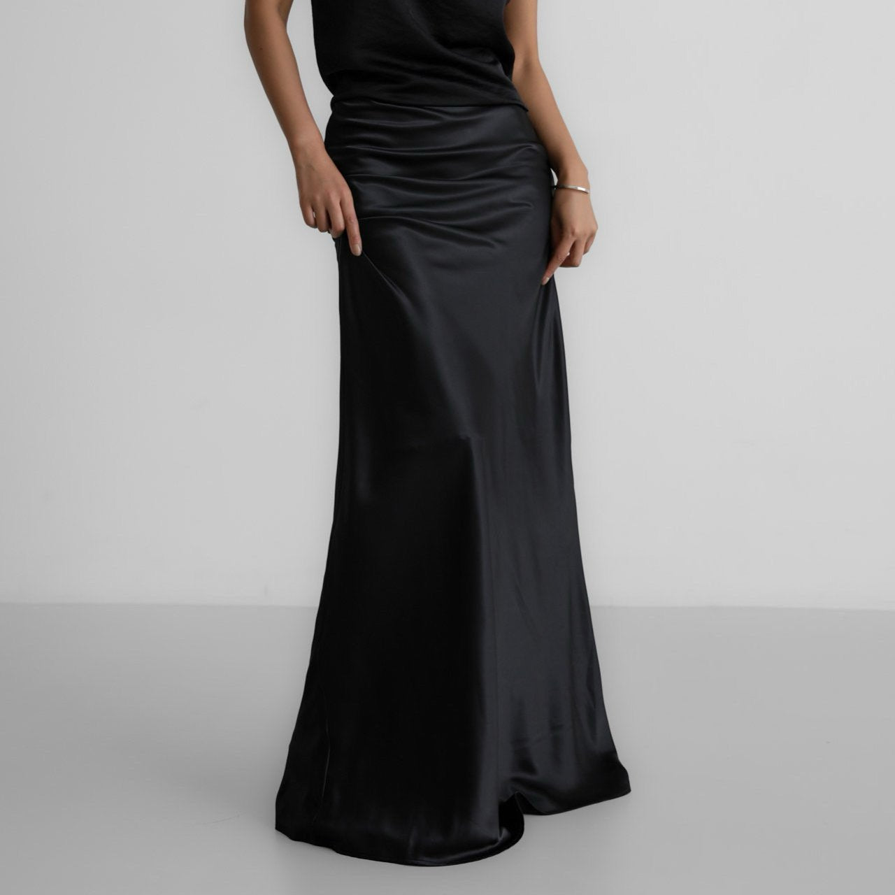 A maxi skirt designed with a fluid drape and a clean, floor-length silhouette. A versatile piece that transitions seamlessly from day to evening.
