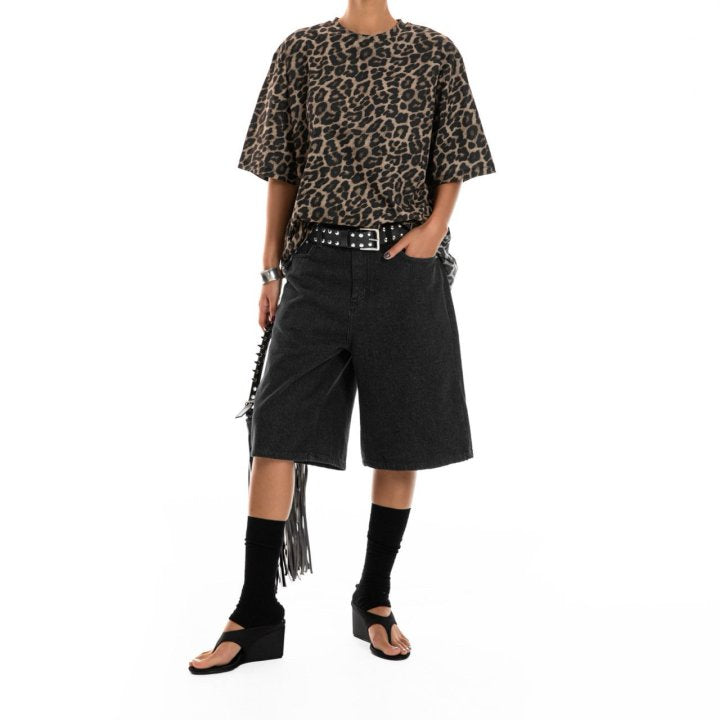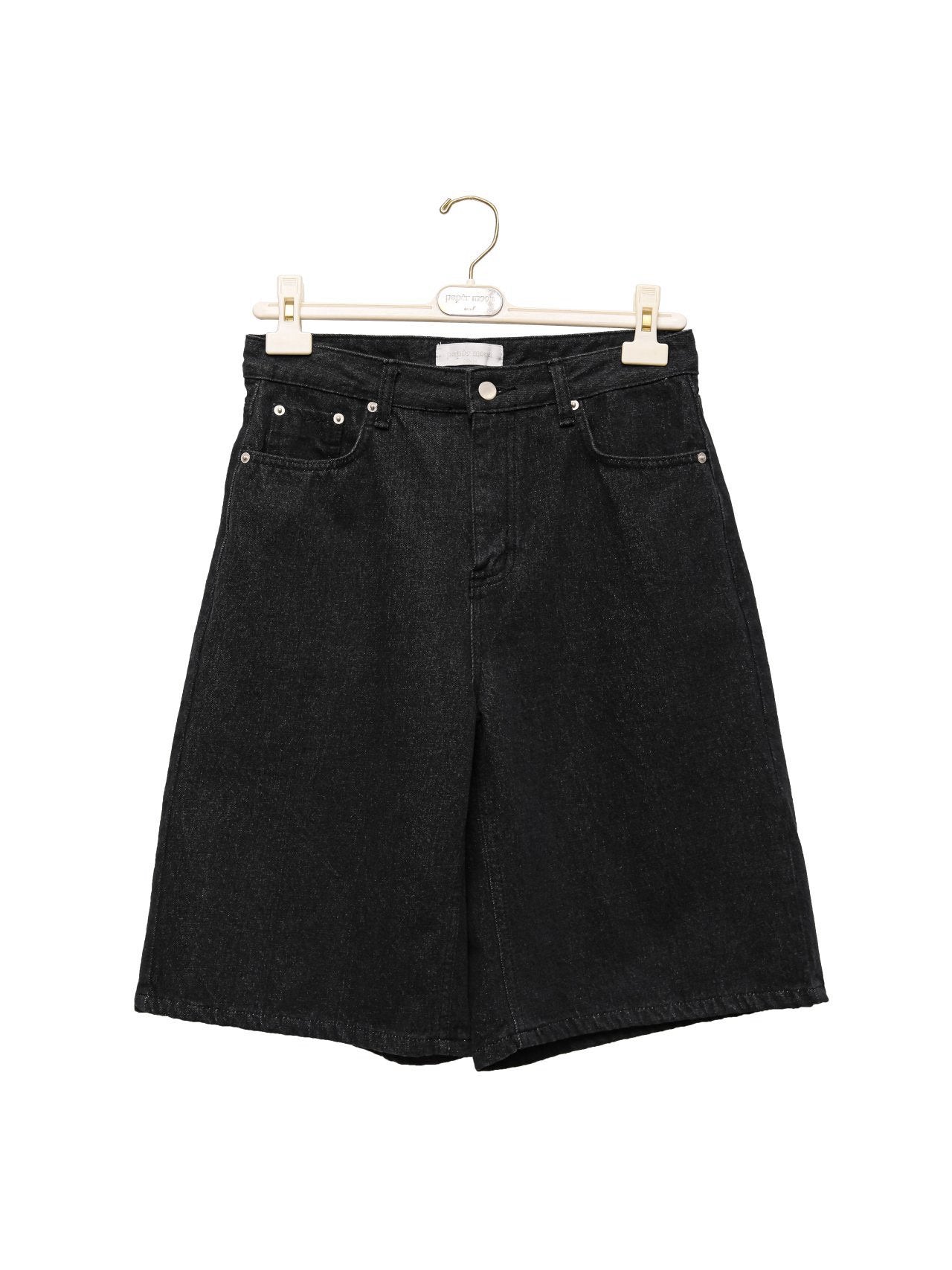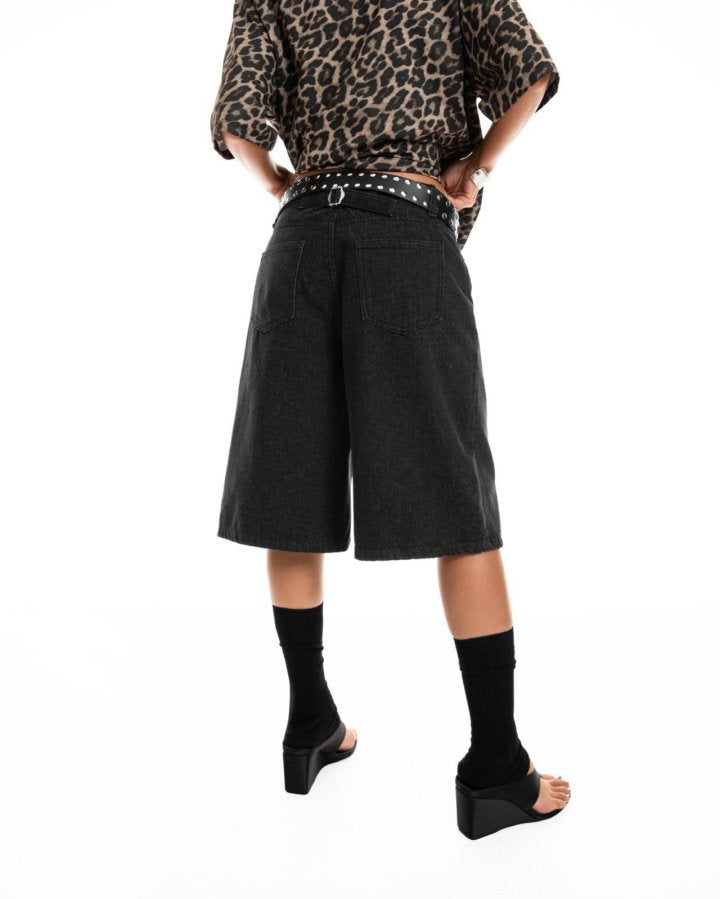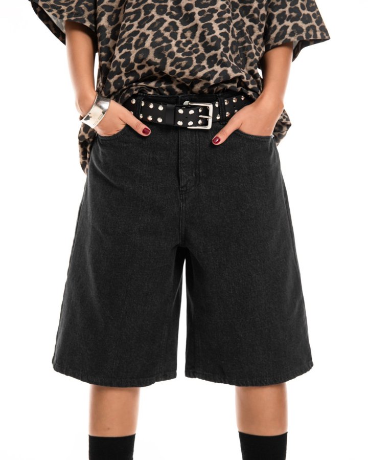 Understated and effortless. The black denim Bermuda shorts offer a modern shape with a relaxed attitude for day-to-night wear.