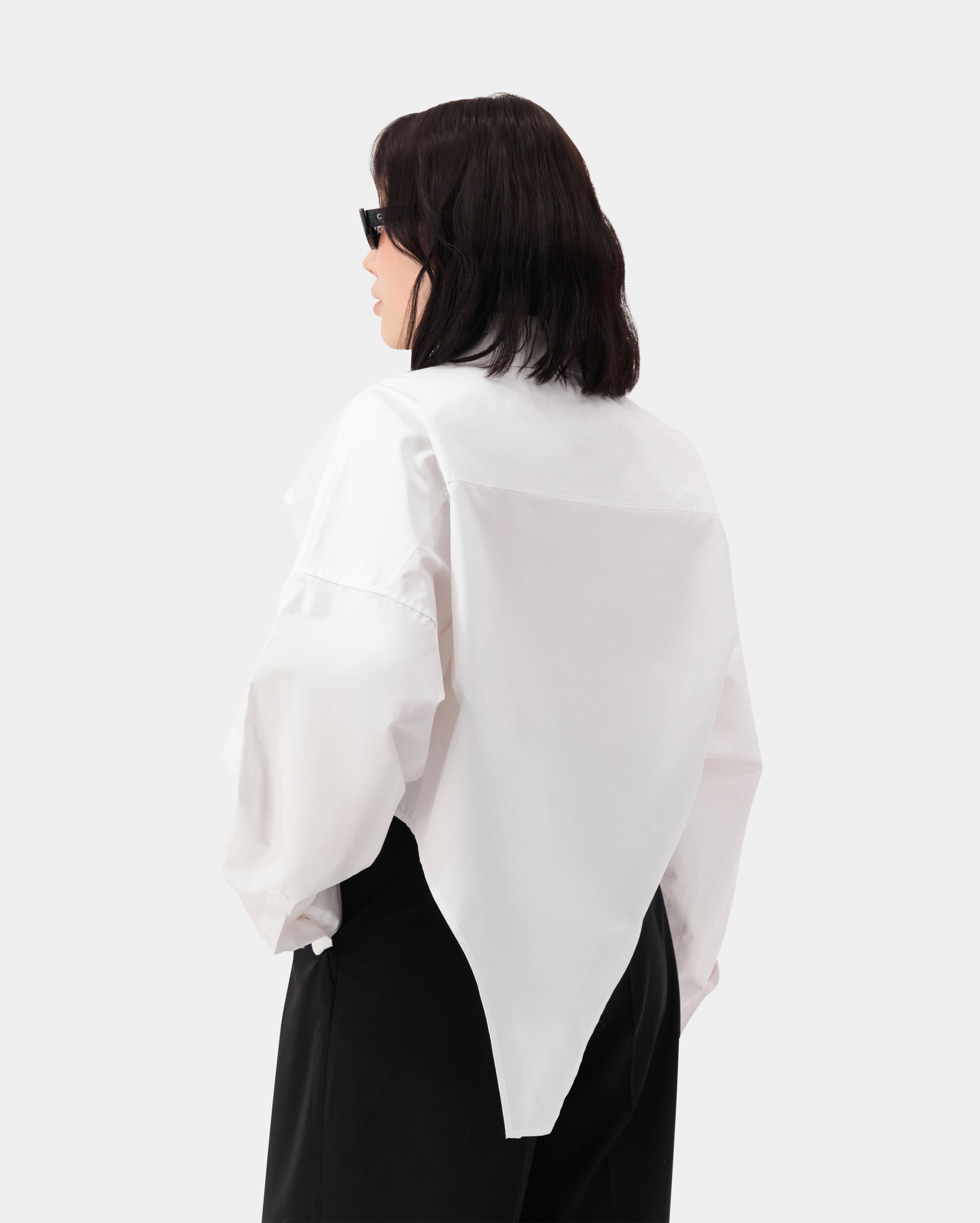 A refined button-down shirt featuring a bodysuit design, crafted from 100% cotton for an elegant and functional fit.
