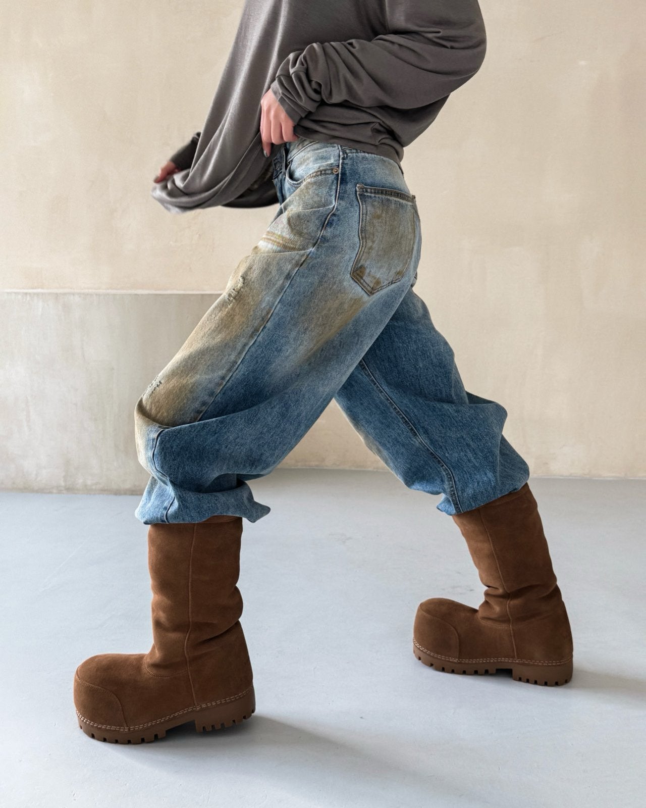 Crafted in washed blue with a gradient fade, these jeans pair a wide-leg cut with an effortlessly relaxed attitude. Elevated yet understated.